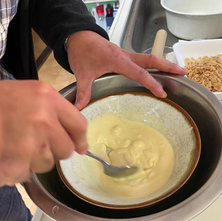 みんな作るのは初めてなので少し緊張した様子でしたが、みんなそれぞれ作る工程を分けてやりました。お菓子作りが上手な職員さんにレシピを聴きながら、みんな楽しく和気あいあいと調理ができました。